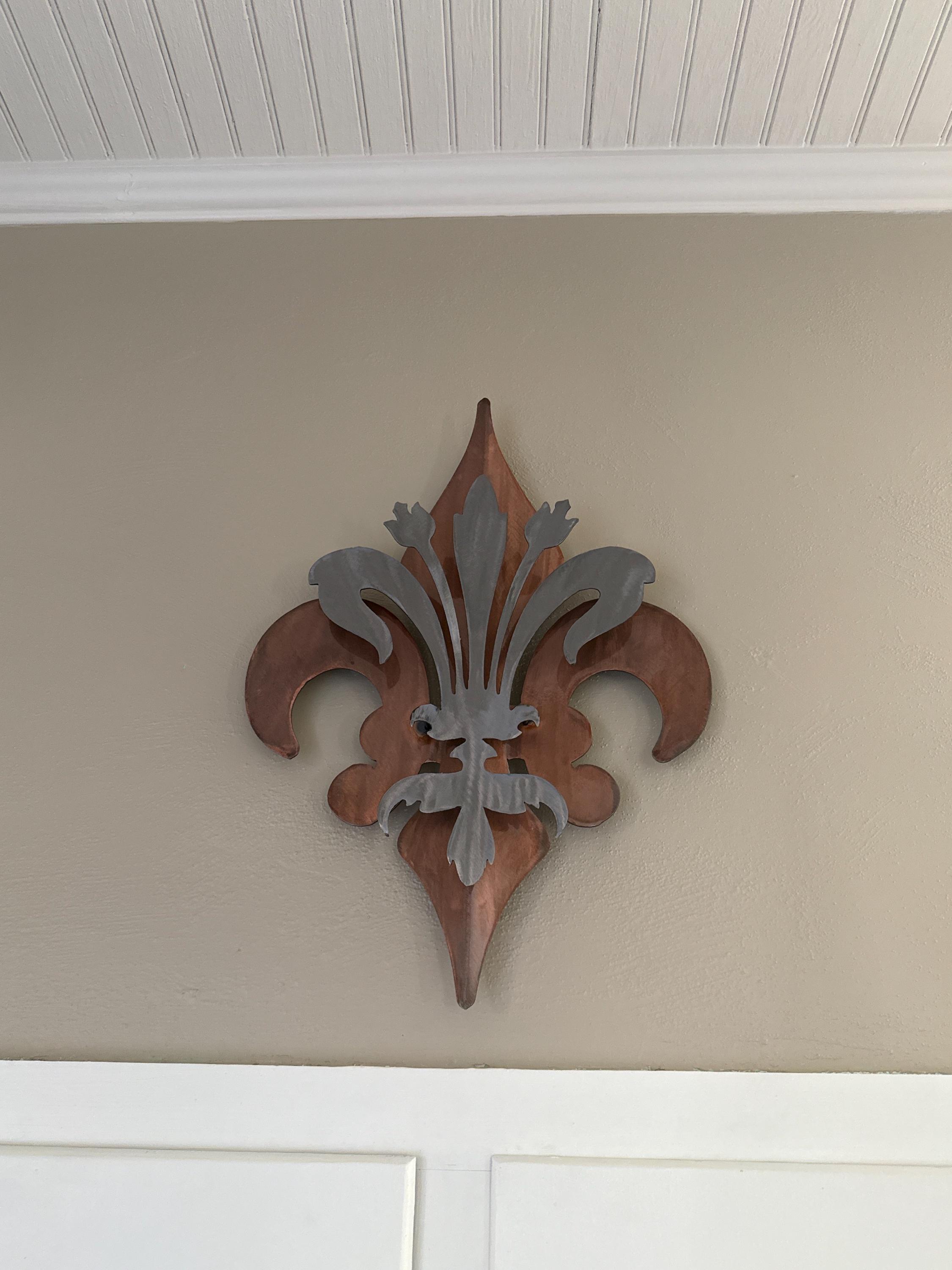 This beautiful design features a back copper fleur de lis with a front polished hope fleur de lis and a clear powder coat finish.