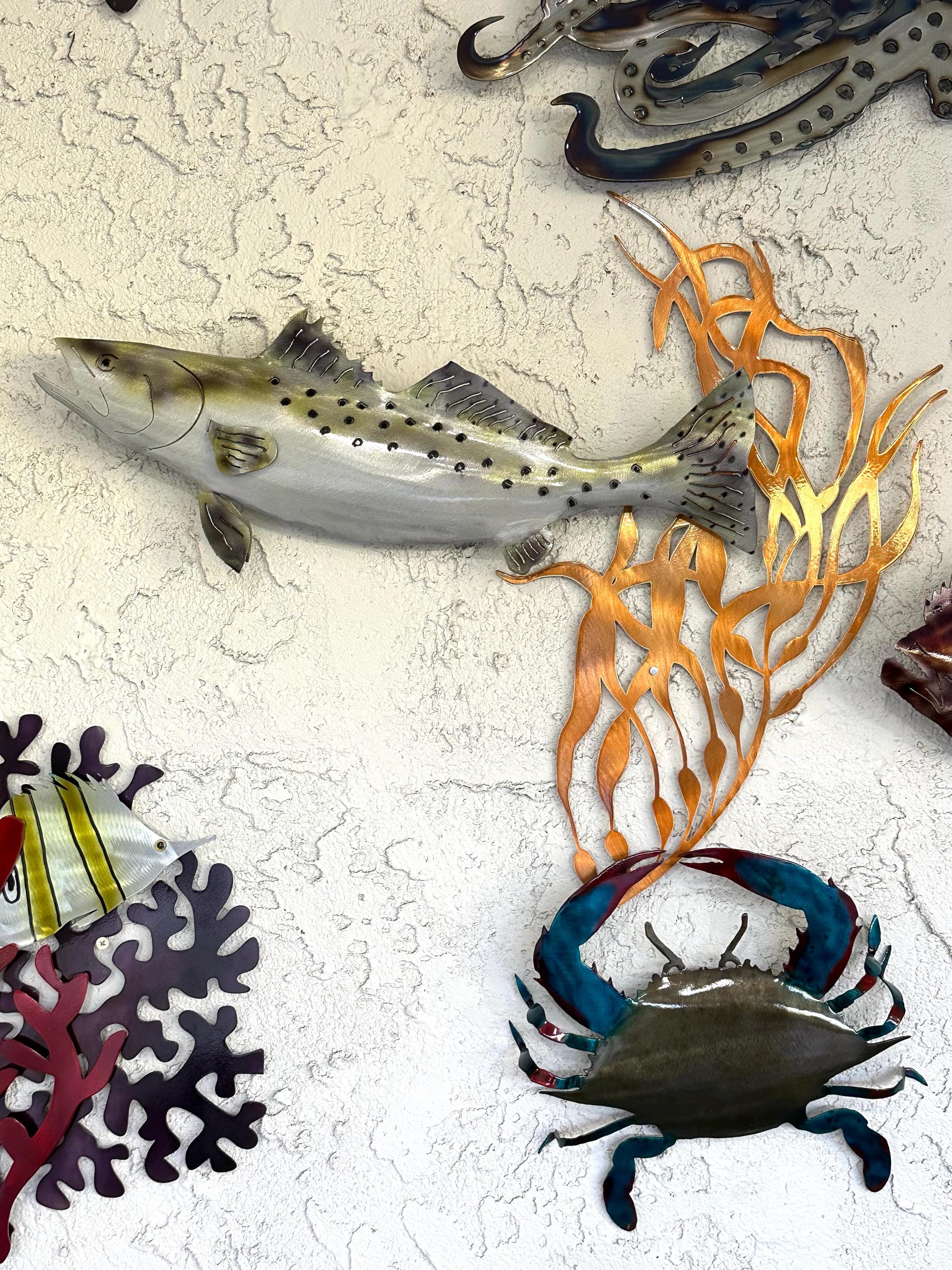 These are truly 5-star metal arts of sea animals! Excellent design, materials, painting, finish and craftsmanship! The speckled trout and the crab are so lively and vivid! Recommended!